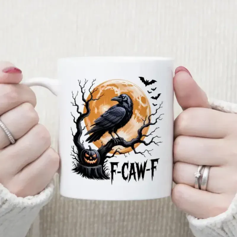 F-Caw-F Funny Crow Mug, Black Crow Moonlit Ravenn Accent Mug, Funny Raven Lover Halloween Gift